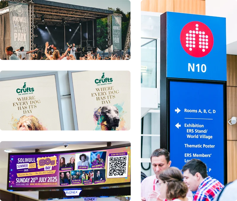 We blend design expertise with real-world event knowledge to deliver branding that works across every channel – from digital screens to banners, programmes to social media. We don’t just create graphics; we amplify your brand’s presence and maximise your event’s exposure before, during, and after.